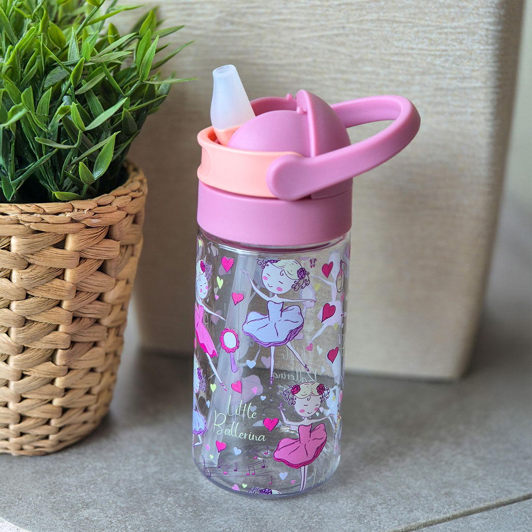 בקבוק שתייה עשוי פלסטיק איכותי מסוג טריטן, נטול BPA ועומד בתקן מזון ישראלי (5113). בעל קיבולת של 480 מ״ל, עם פיה נשלפת שנפתחת בשליפה – נוח לשימוש לילדים וללא צורך בהברגה.